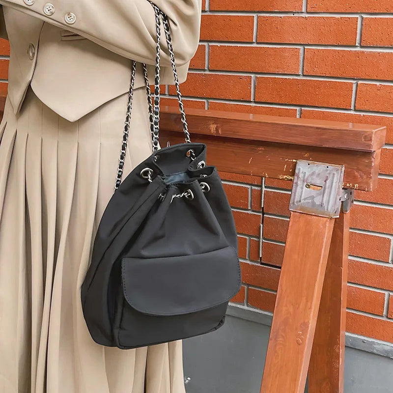 Light Oxford Cloth Backpack Female College Student Travel Chain Bucket Bagpack