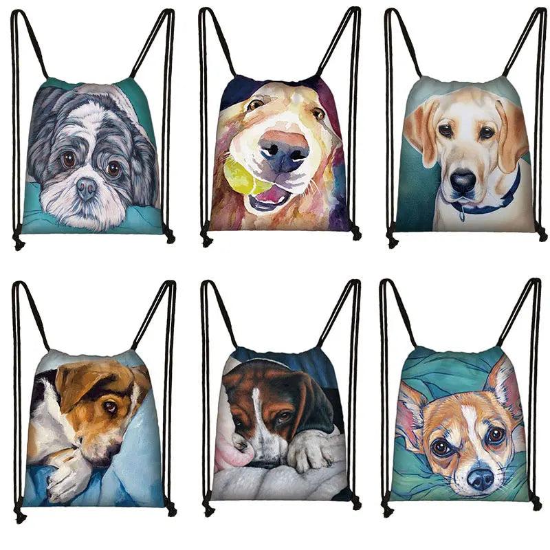 Lovely Dog Prints Drawstring Backpack Eco Polyester Casual School Shoulder Bags