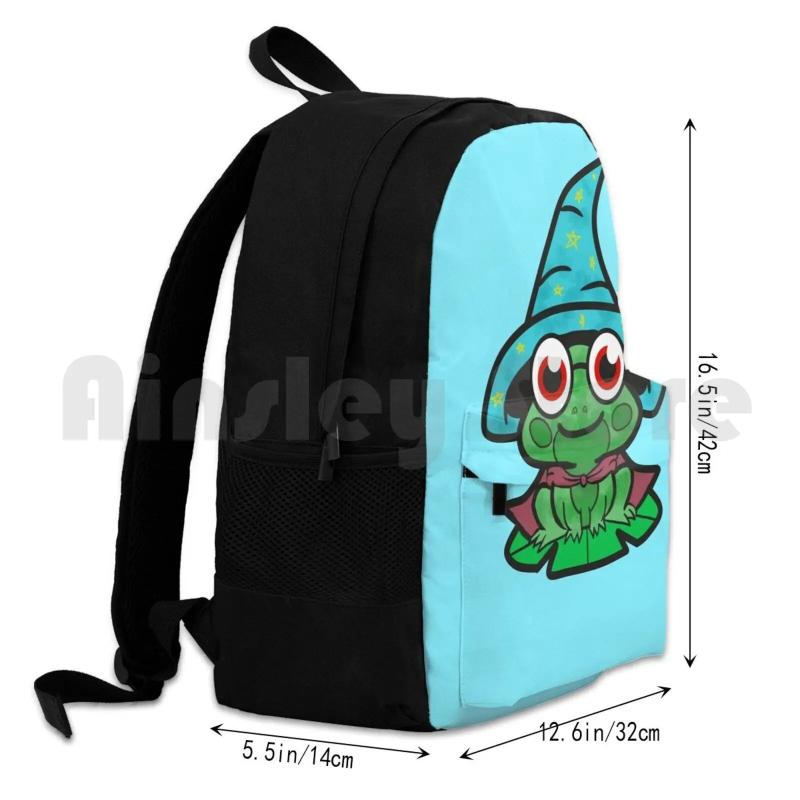 This whimsical backpack features a magical frog wizard design, perfect for outdoor activities like hiking, riding, climbing, and other sports. The magic frog magician will conjure up a smile on your face wherever you go!