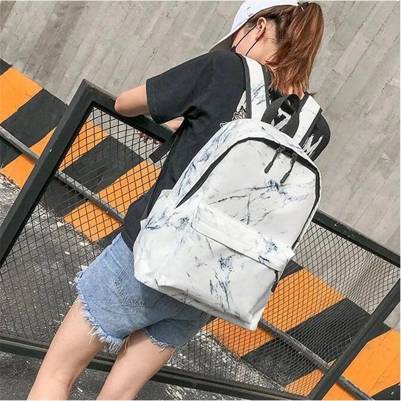 This stylish backpack features a unique marble stone print design, perfect for boys and girls. Made of durable canvas material, it includes shoulder straps and a spacious interior for school essentials.