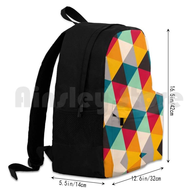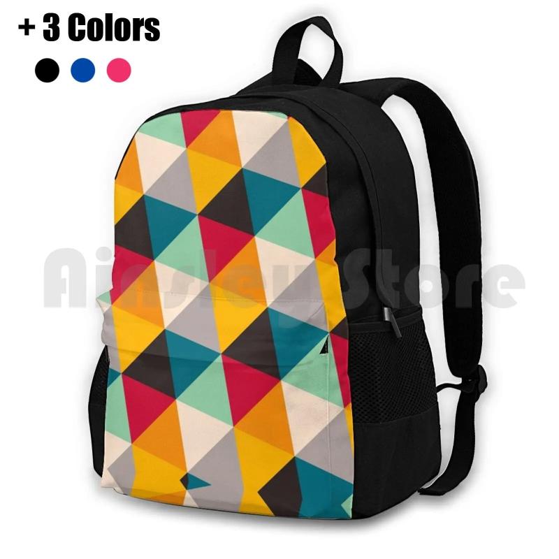 Stay stylish on your outdoor adventures with this colorful hiking backpack featuring a vibrant geometric pattern.