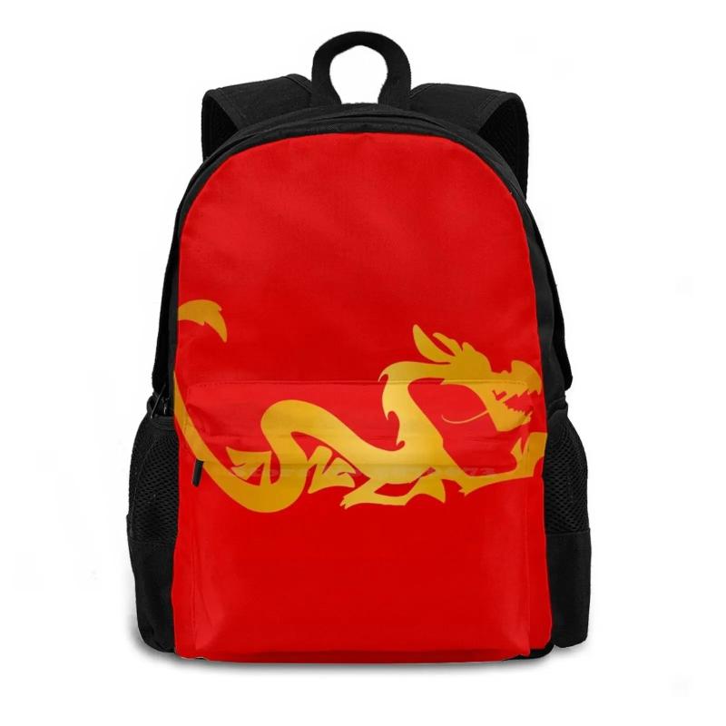 Carry your essentials in style with this Mushu dragon backpack featuring a 3D print design. The golden color adds a touch of elegance to your casual look.