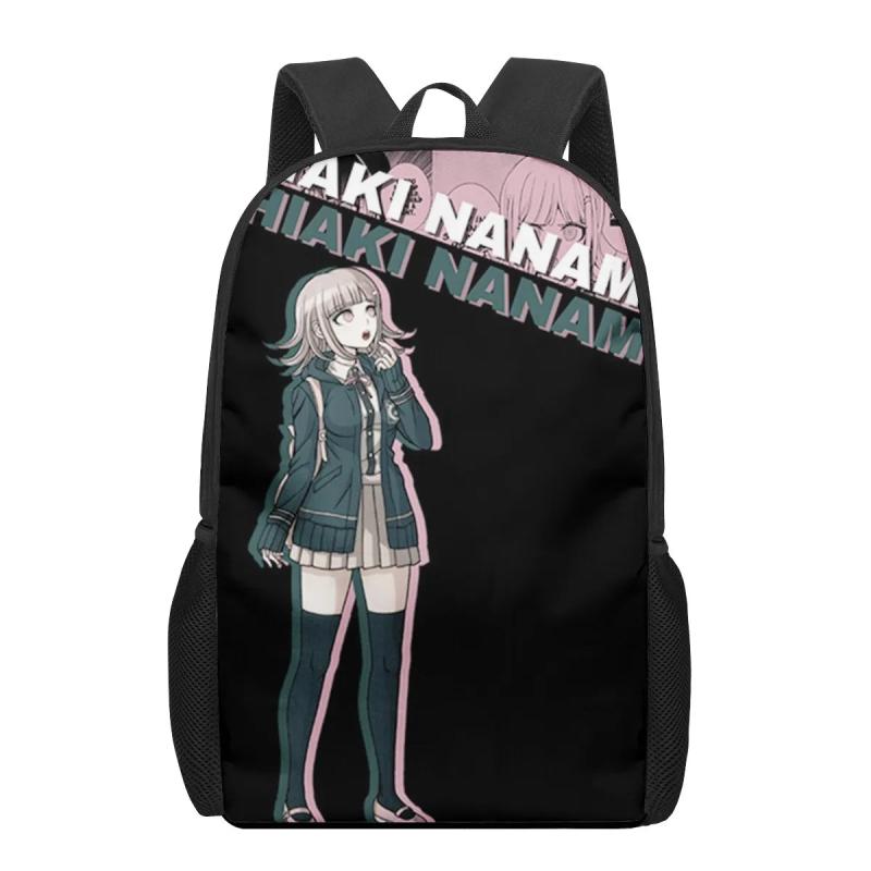 This fashionable school backpack features Nanami ChiaKi Danganronpa print, suitable for boys and girls. It can hold books, laptop, and other essentials for school.