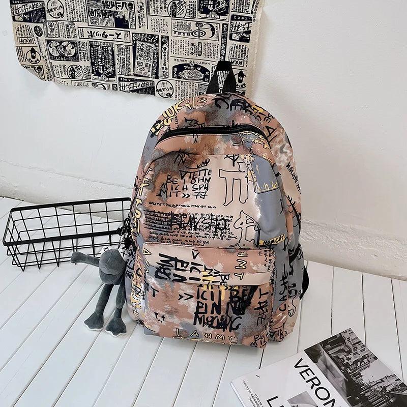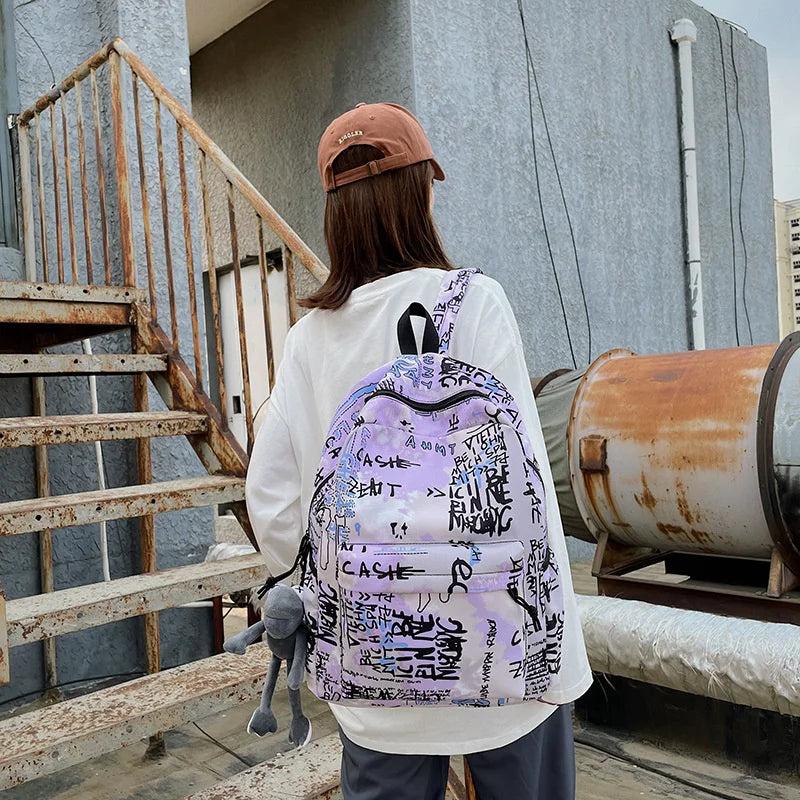 This printed personality street backpack is perfect for girls and boys for school or travel.