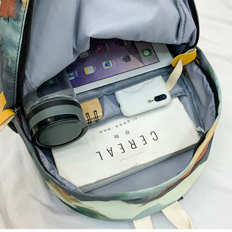 Description:This nylon graffiti backpack combines style and functionality with its softback design and high-capacity storage. Perfect for school or daily use.Features: Made of durable nylon material Stylish graffiti design for a unique look Features a secure zipper closure Spacious interior for storing school essentials Comfortable to carry with adjustable straps...