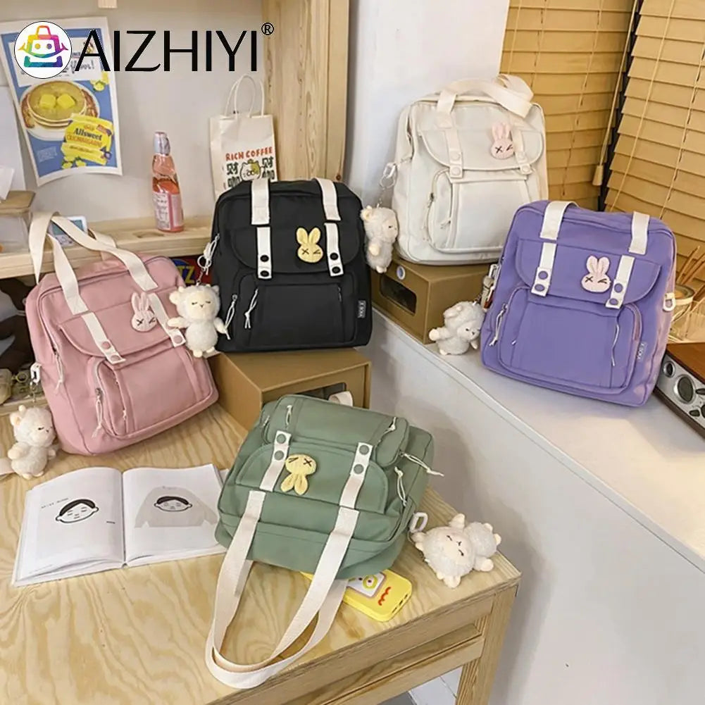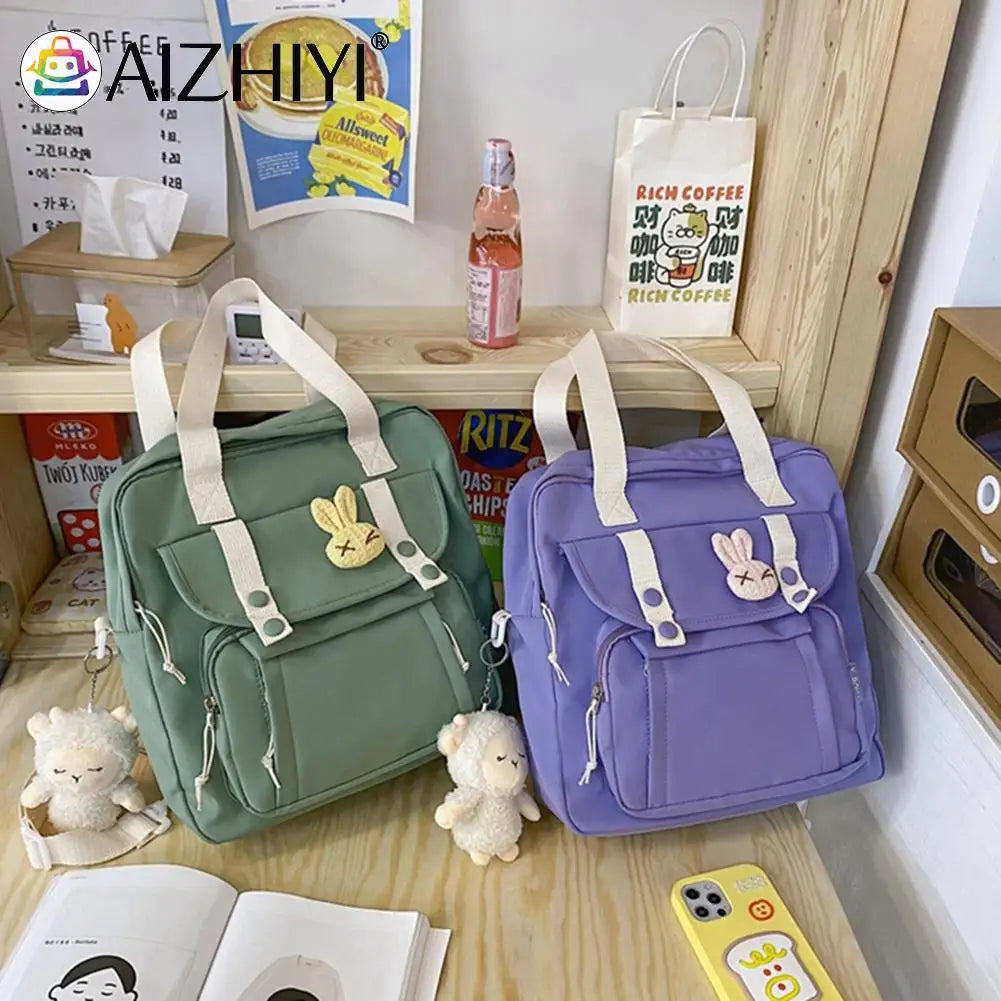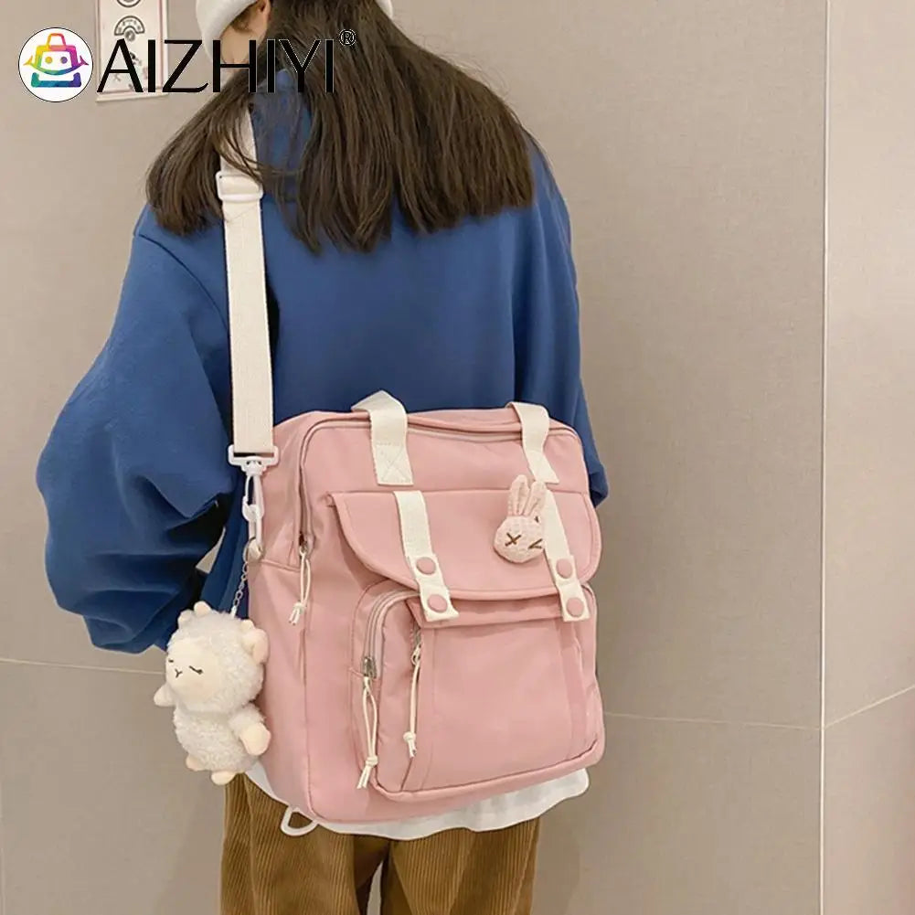 This Japanese style schoolbag is made of durable nylon material and features a handle for easy carrying. It can be used as a shoulder backpack or messenger bag, making it versatile for various activities.