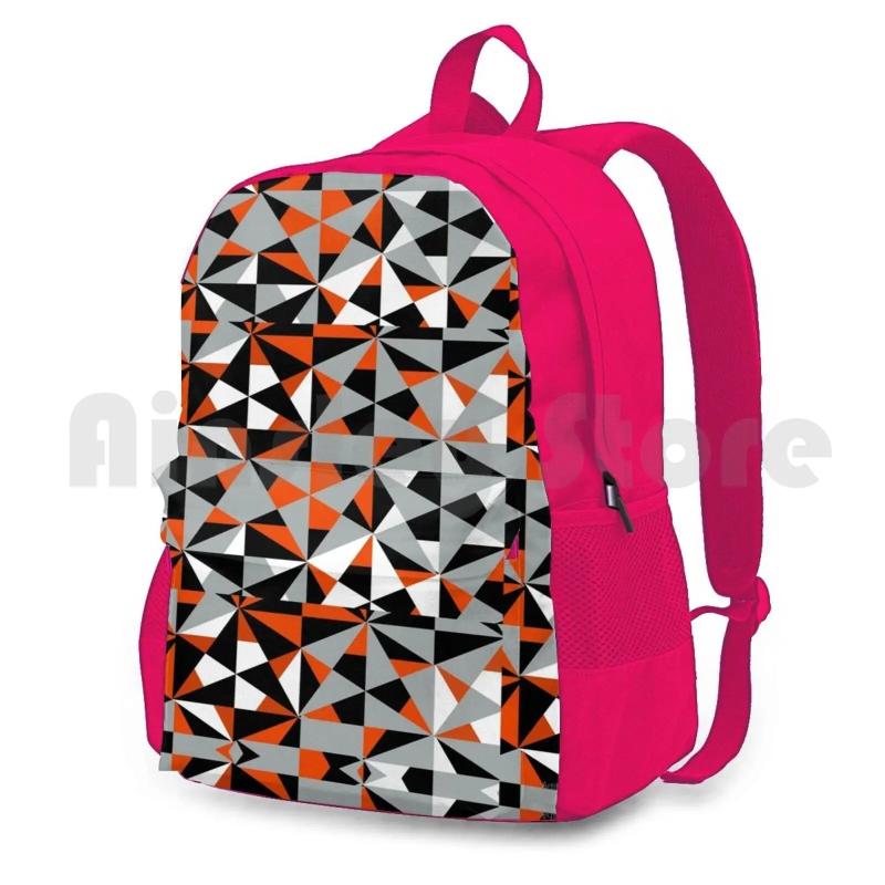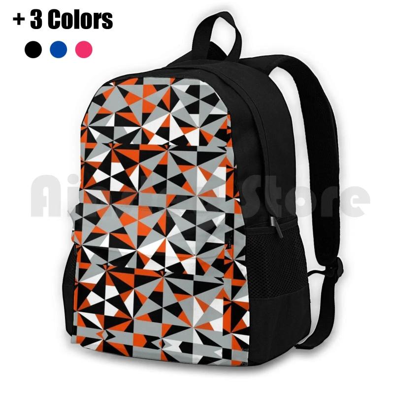 Orange Grey Geometric Abstract Pattern Outdoor Hiking Backpack