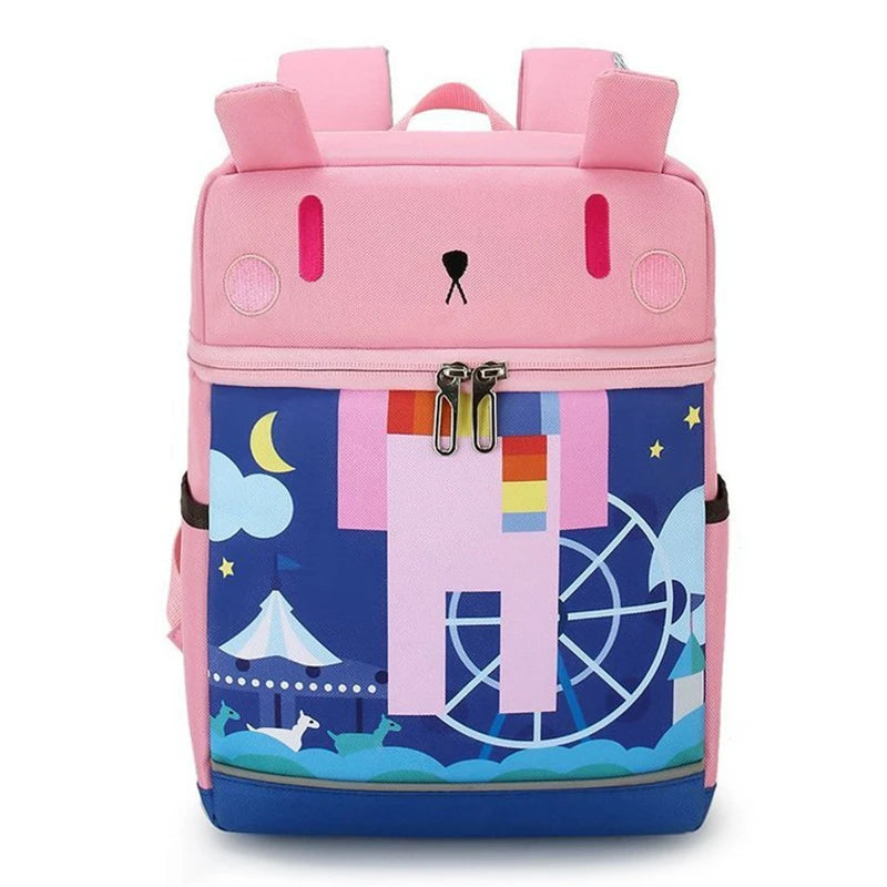 This school backpack is designed for children with orthopedic support in mind. It features fun cartoon designs and ample space for school supplies and a laptop.