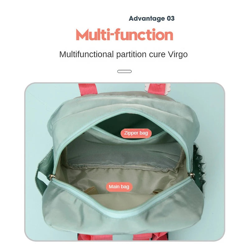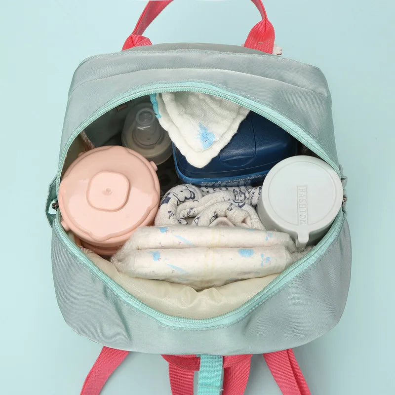 This waterproof mom backpack is perfect for outdoor travel with a large capacity to carry all the baby essentials. The cute cartoon design adds a fun element to the bag.