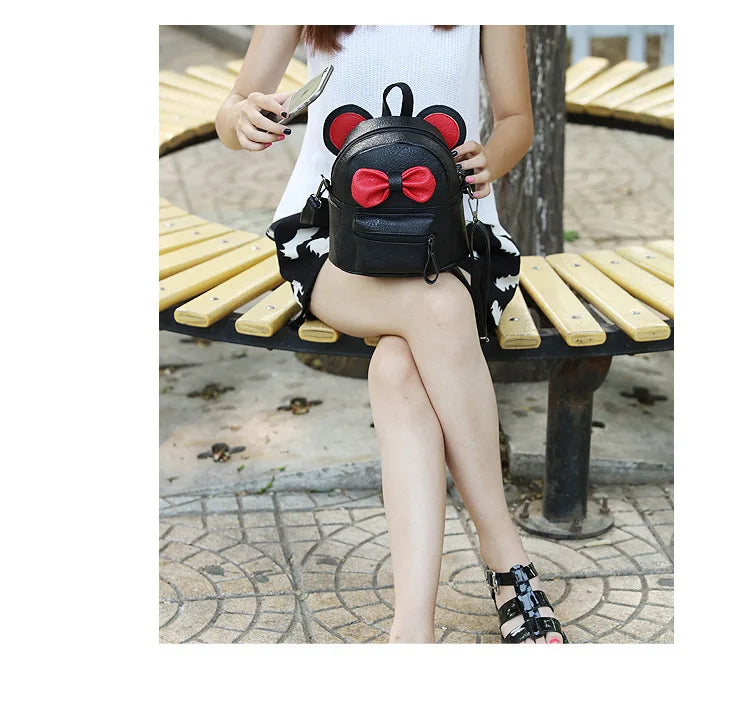 Adorable mini backpack with personalized name, perfect for girls. Features cute bow ears design, ideal for daycare, travel, and back to school.