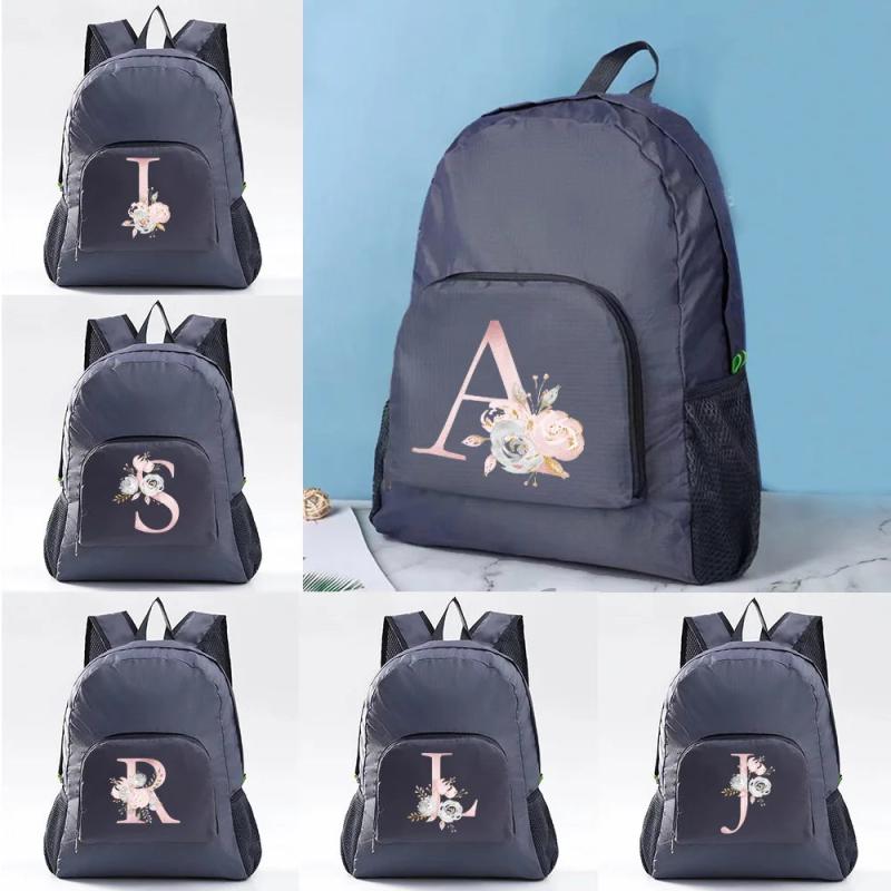 This ultralight backpack is perfect for outdoor activities like hiking, camping, and running. It features a lovely pink flower letter print and can be easily folded for storage.