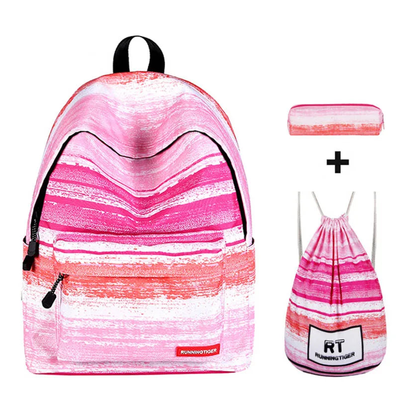 Pink Stripe Printing Children School Bags For Girls Teenagers Backpacks