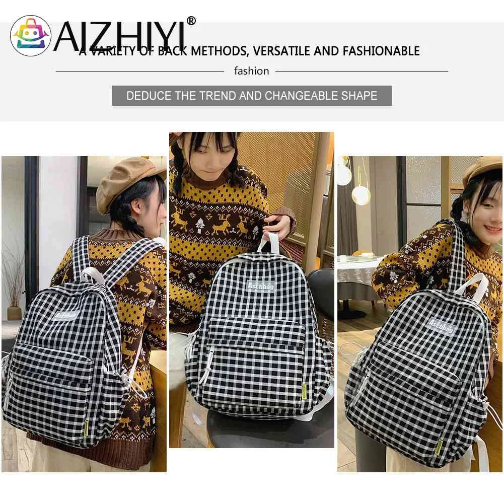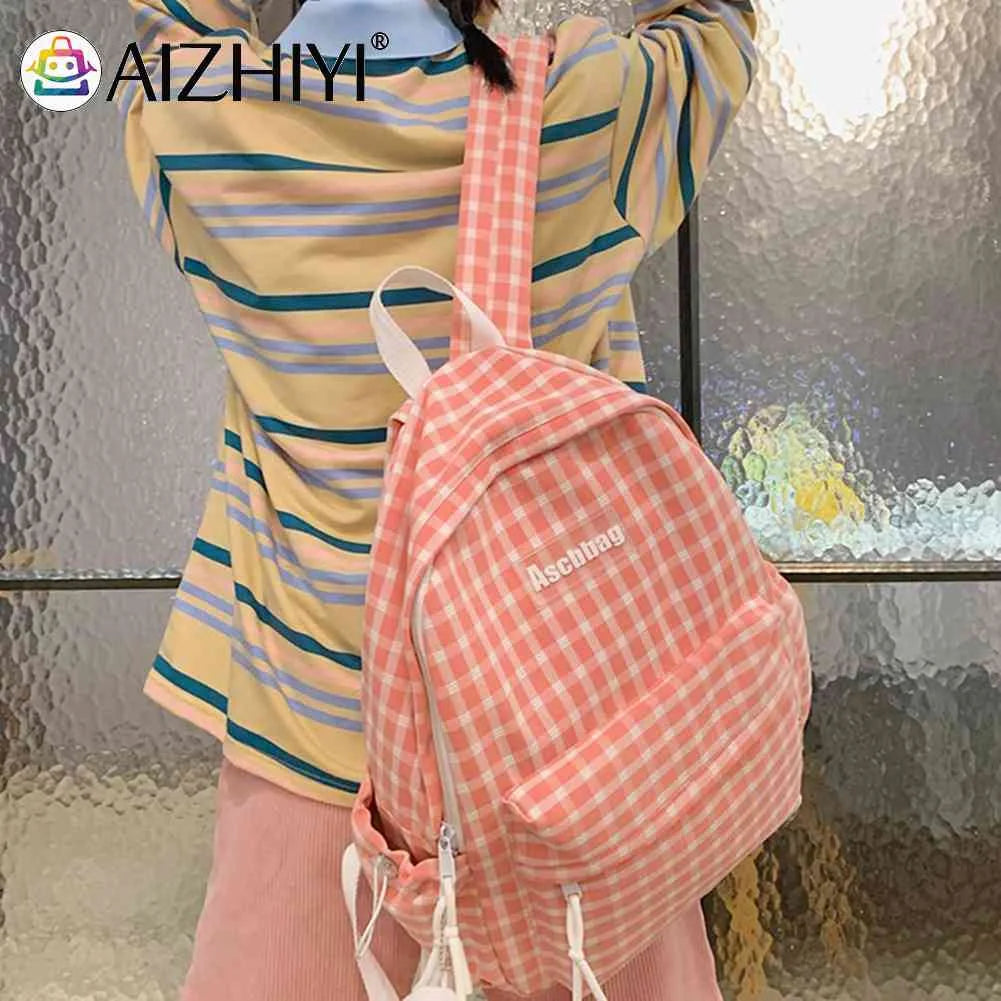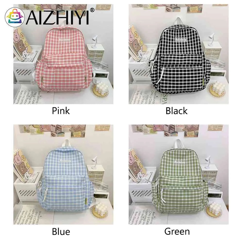 Plaid Backpack Student School Teen Laptop Bookbag