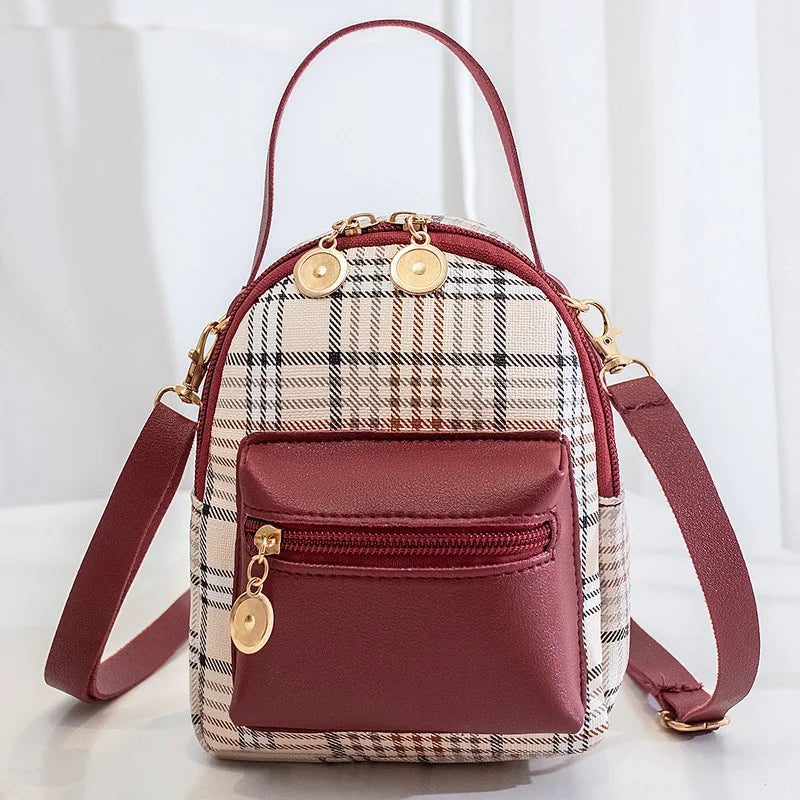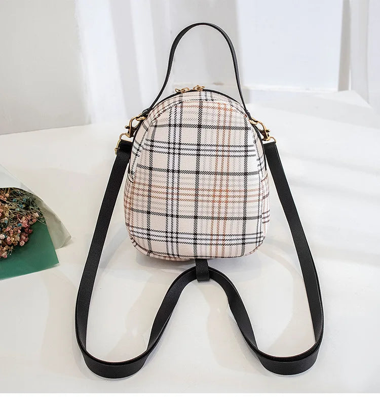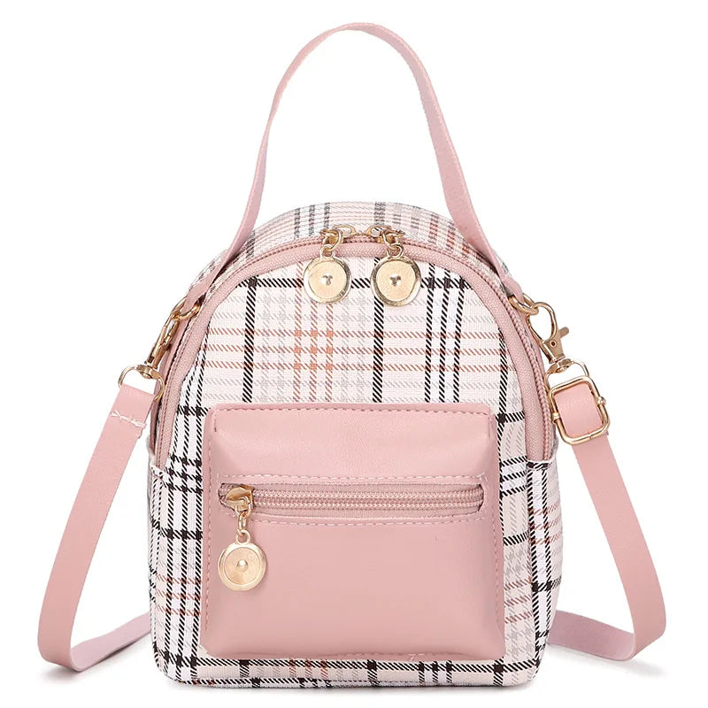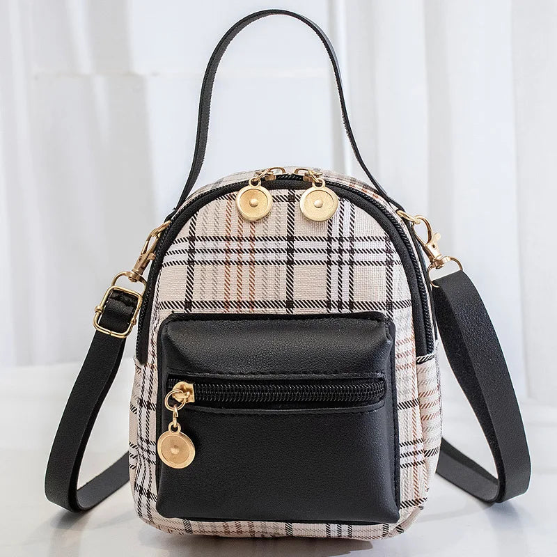 Plaid Pocket Front Backpack Crossbody Bag for Teenage Girls Shoulder Purse