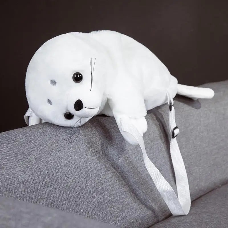 This adorable plush seal backpack is perfect for kids and girls to use for kindergarten or everyday activities. It features a cute anime cartoon design that kids will love.