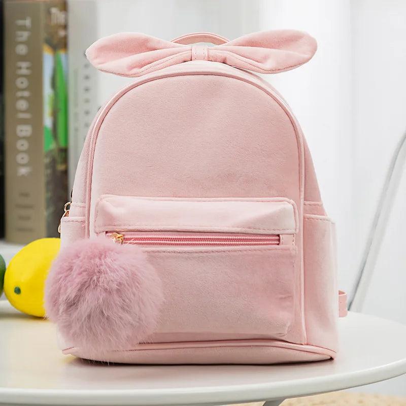 This adorable kids backpack features a plush bowknot design, making it perfect for little girls. The schoolbag is ideal for carrying essentials to school or outings.