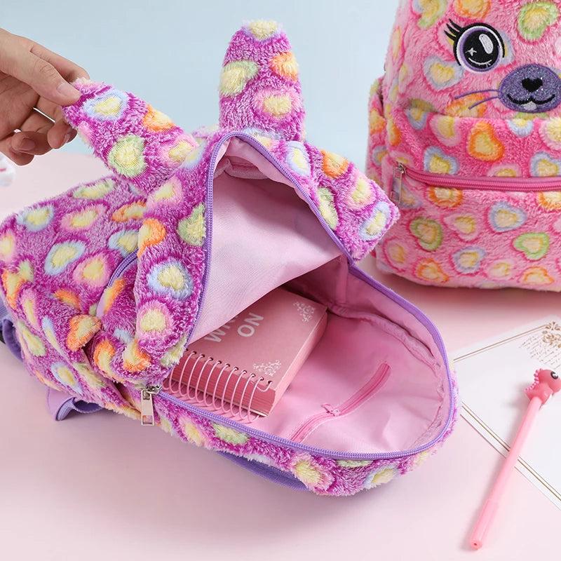 This adorable plush cat bag is perfect for girls! It features a cute design and is ideal for carrying school essentials. Made of soft polyester, it is comfortable to wear for kindergarten children.