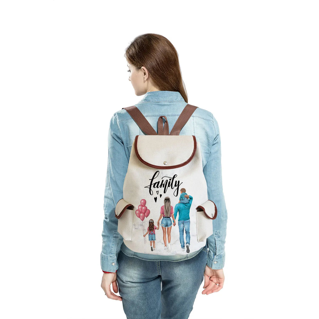 Stay organized with this cute linen backpack that features a preppy cartoon momlife design, perfect for all moms on the go.