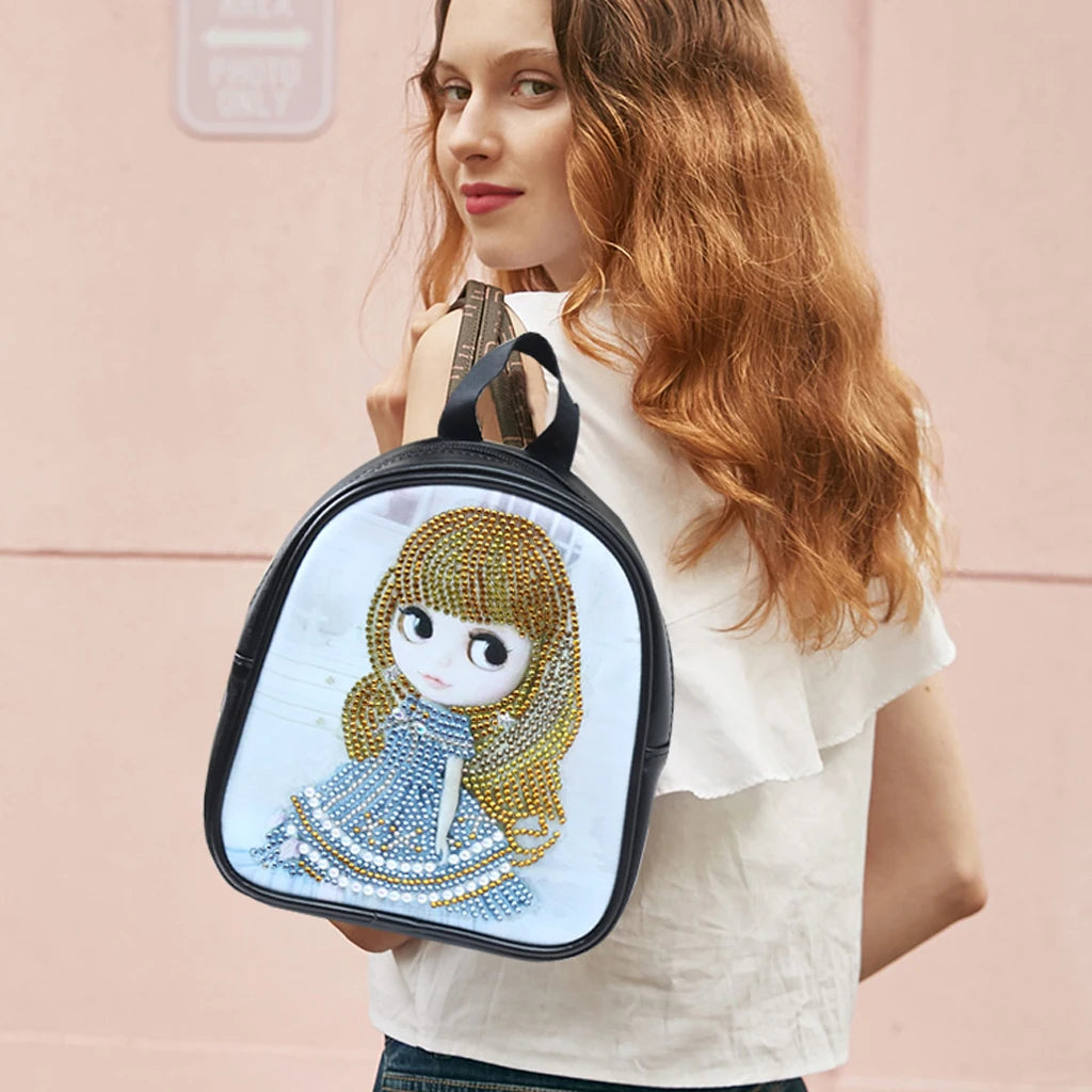 This exquisite crossbody chain bag features a princess design with a diamond painting finish. Perfect for carrying your essentials in style, this bag can also be used as a backpack or pouch.