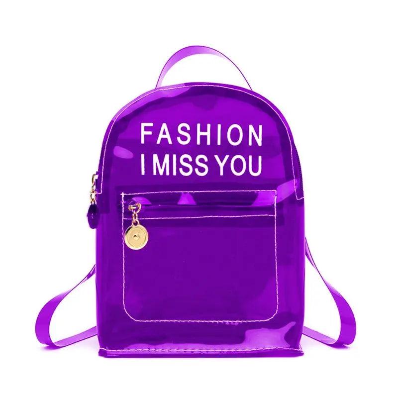 Printing Letter Transparent PVC Backpack Travel School Book Bag Daypack