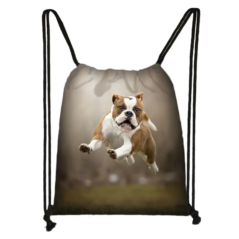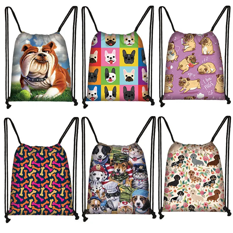 Pug Print Drawstring Bag Ladies Shopping Storage Bag Travel 3D Print Animal Dog