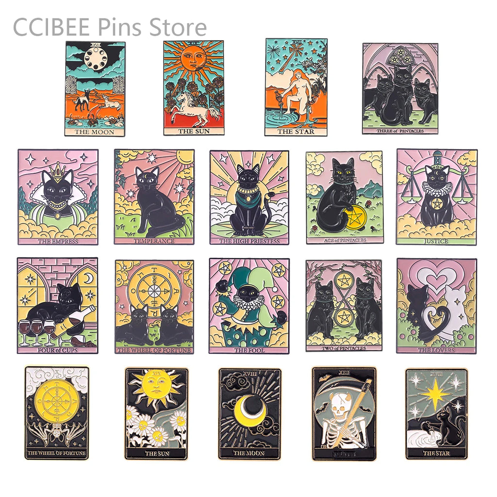 Punk Style Tarot Series Pin Moon Sun Star Skull Paint Halloween Accessory
