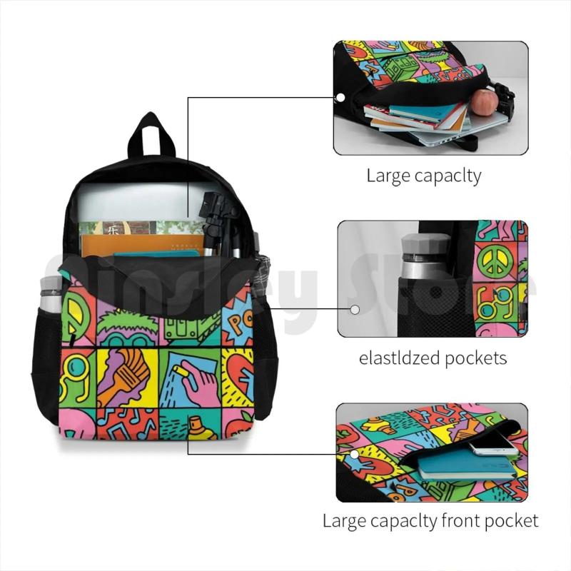 Description:Carry your belongings in style with this retro pop art themed backpack featuring colorful dancing characters.Features: Colorful pop art design with dancing characters Ideal for outdoor activities like hiking, climbing, and riding Spacious compartment for storing all your essentials Adjustable straps for a comfortable fit Made with durable materials for...