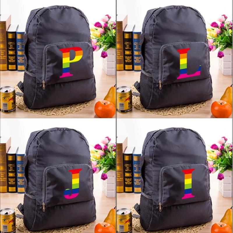 Rainbow Letter Print Backpack Lightweight Folding Bag