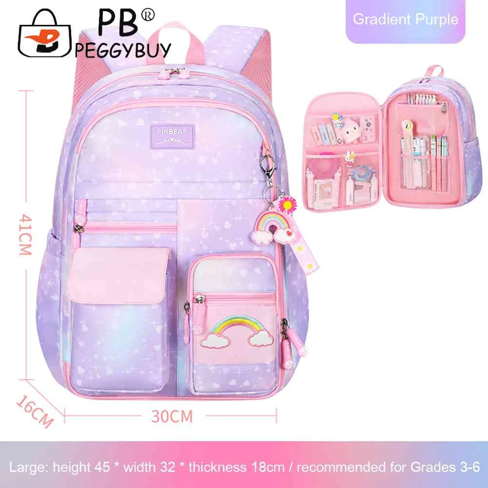 This backpack is perfect for girls who want a stylish and functional bag for school, travel, or weekend outings. The colorful rainbow design adds a fun touch to any outfit.