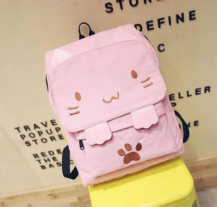 This cute cat-shaped canvas backpack is perfect for senior school students. Ideal for both school and travel.