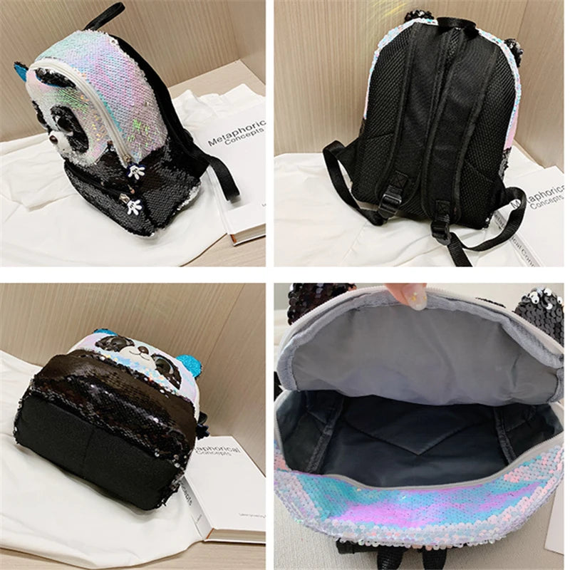 Sequin School Bag For Girls Panda Small Backpack Kids Kawayi Bags