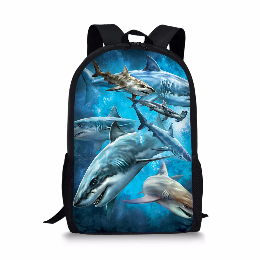 Shark Print Backpack Durable Large Capacity School Bags for Girls Boys