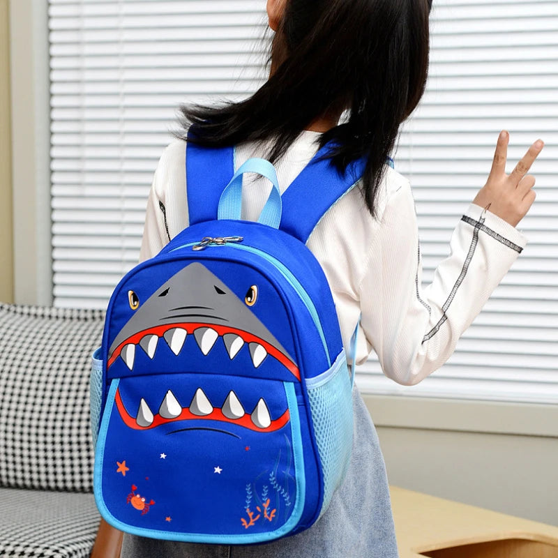 This adorable cartoon shark school bag is perfect for kindergarten and young children. It is lightweight, durable, and designed for comfort.