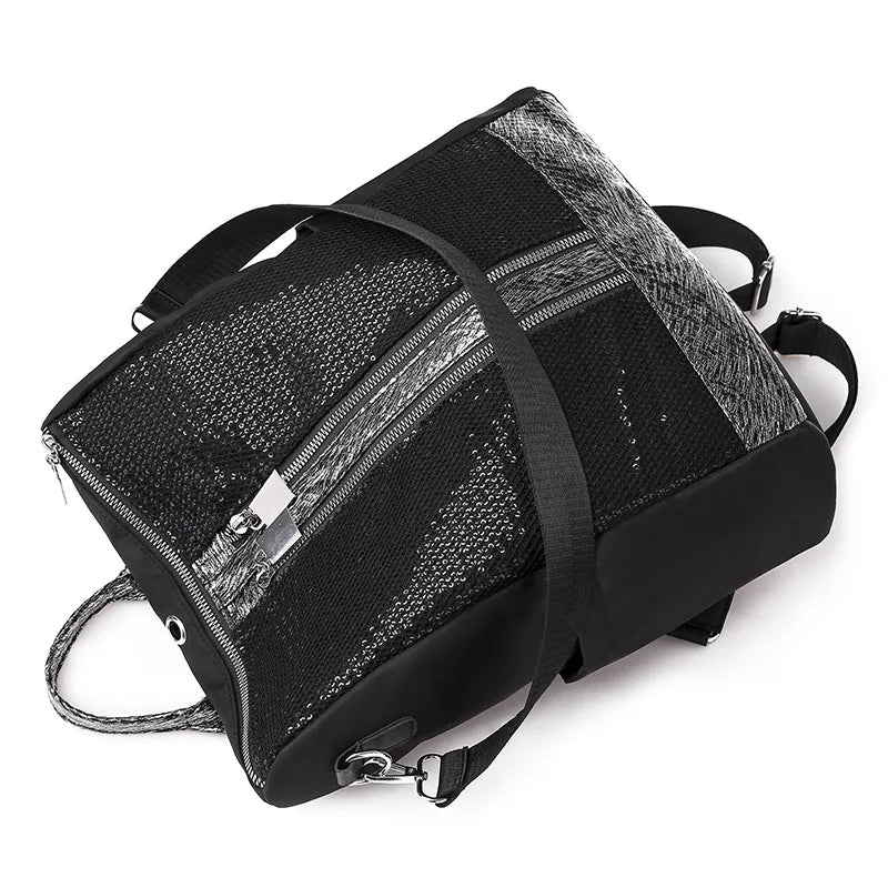 Shining Sequin Backpack Girls Multifunction Travel Bag Bling Mesh Rucksack