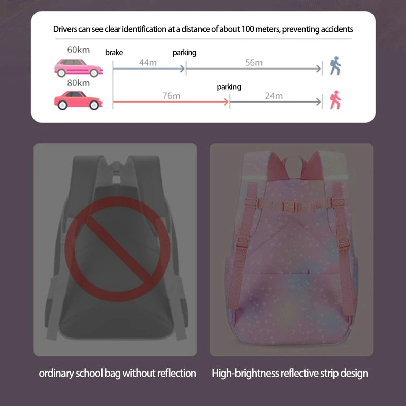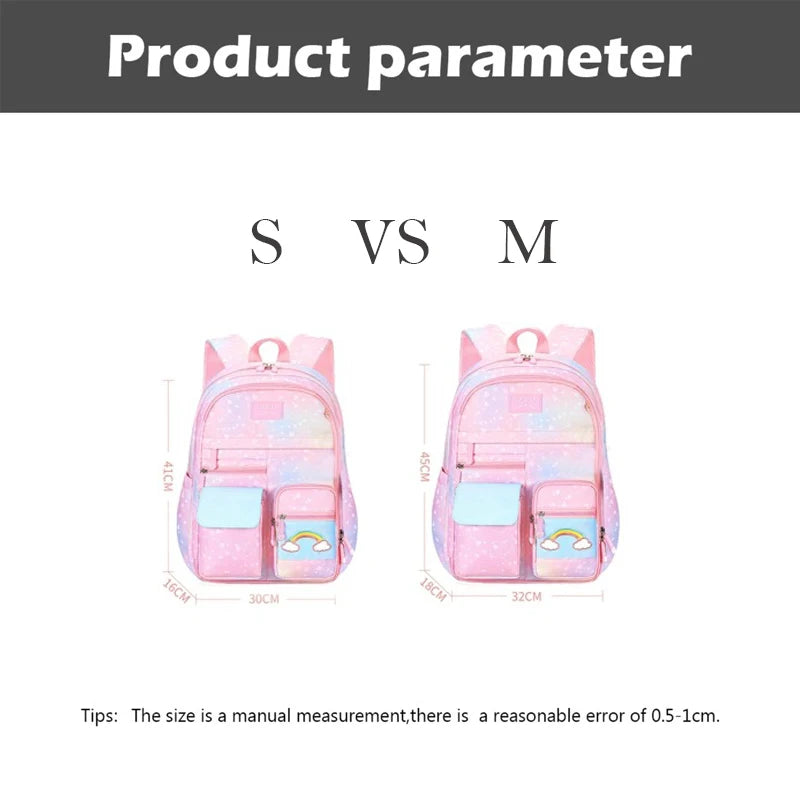 This gradient princess backpack is designed for kids in primary school, featuring a waterproof material to keep their belongings safe and dry.