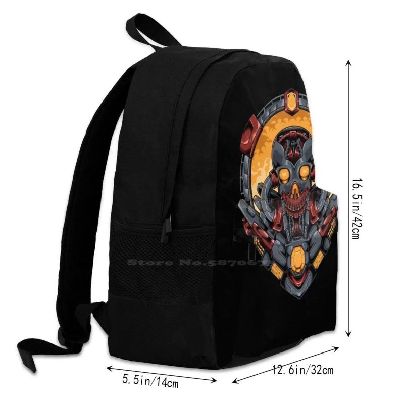 Skull Head Robotic 3D Print Backpack Casual Bag