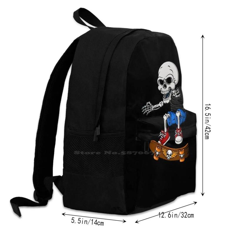 Skull Playing Skateboard Teen College Student Backpack Laptop Travel Bags
