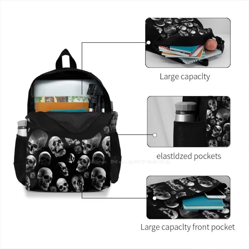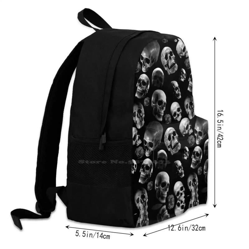 Skulls & Rose Pattern Large Capacity Backpack Laptop Travel Bags