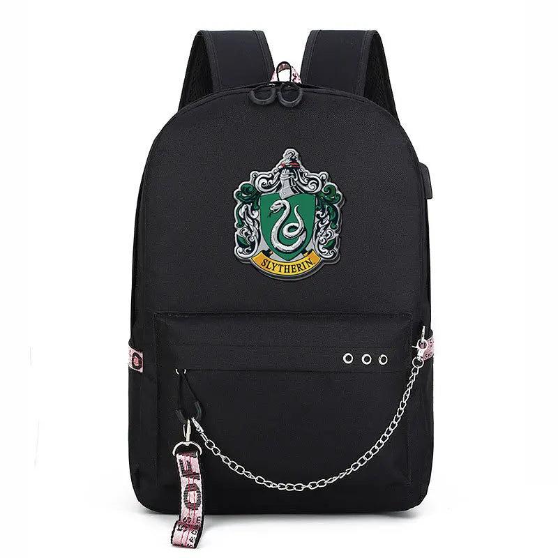 Carry your essentials in this stylish Slytherin-themed backpack. It features a USB charging port for convenience and is perfect for school or travel.