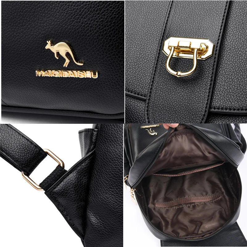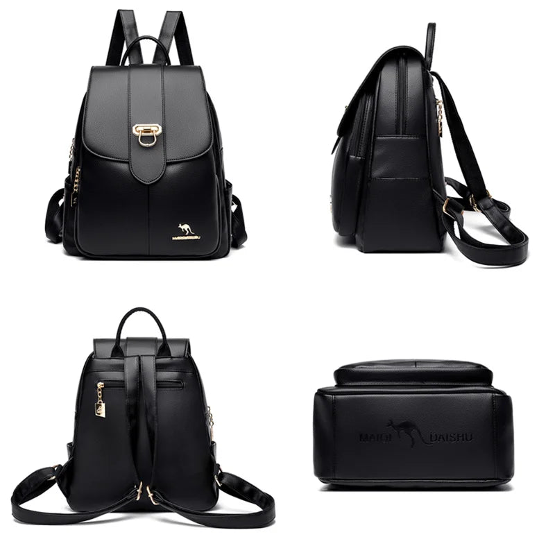 Soft Leather Backpack for Teenage Girls Large Capacity Ladies Bagpack