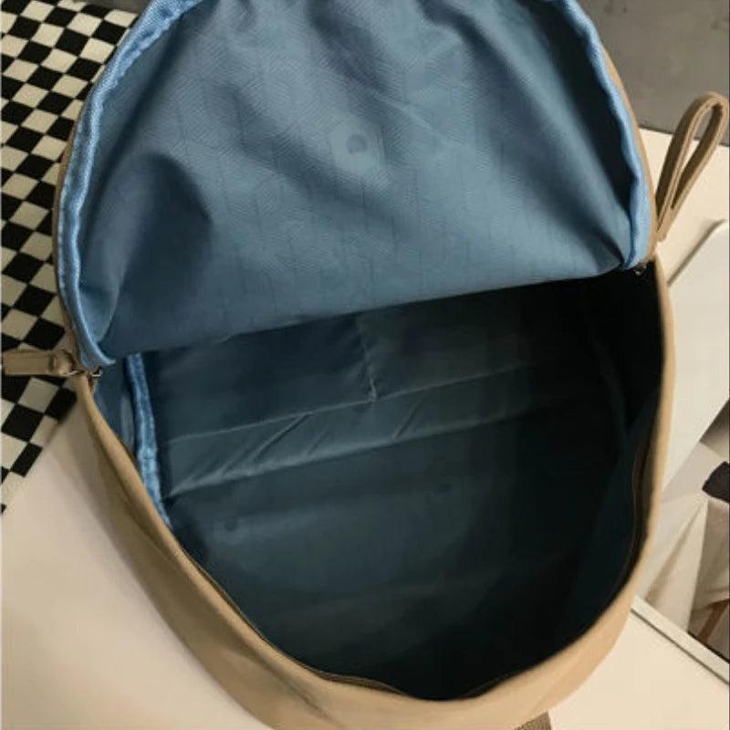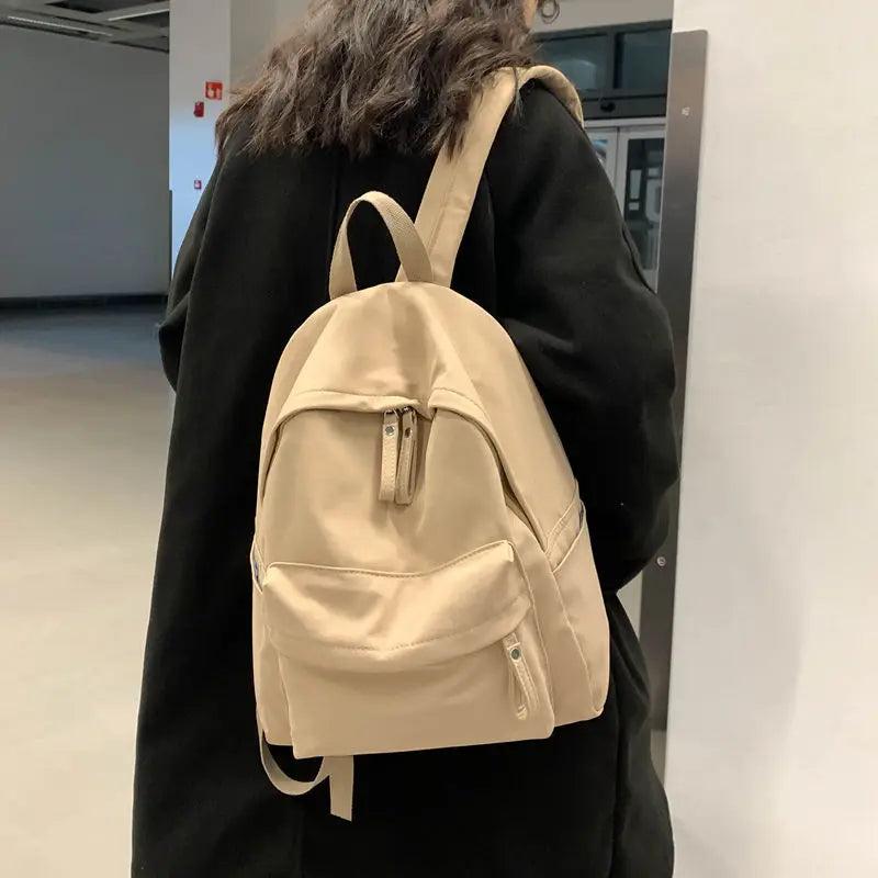 This solid backpack is perfect for students, couples, and travelers. It features a large capacity, nylon material, and a Harajuku style.