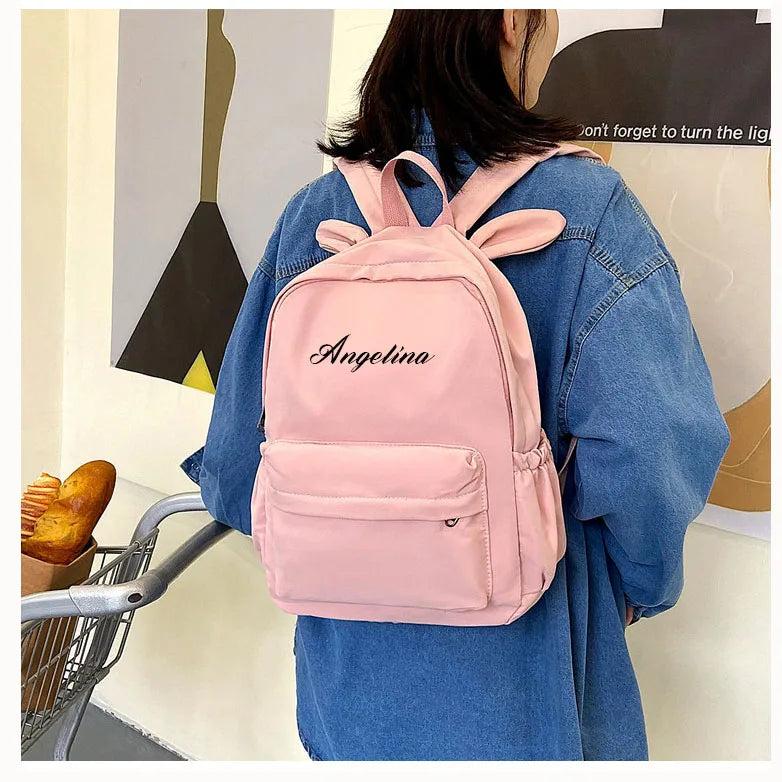 This backpack is perfect for school with its large capacity and lightweight design. Personalized with a cute rabbit theme.