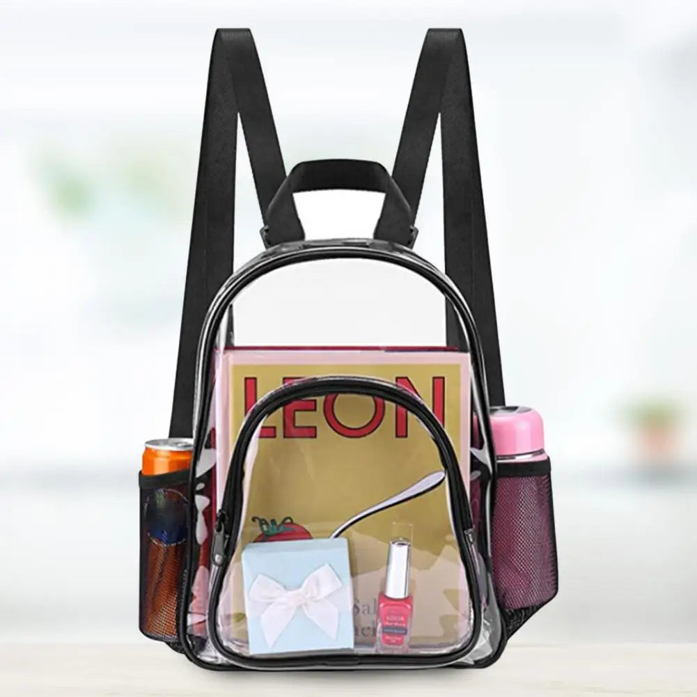 Stay organized and stylish with this practical sports backpack that offers a see-through design. It has a spacious capacity, is lightweight, and portable, making it ideal for carrying sports gear, books, and more.