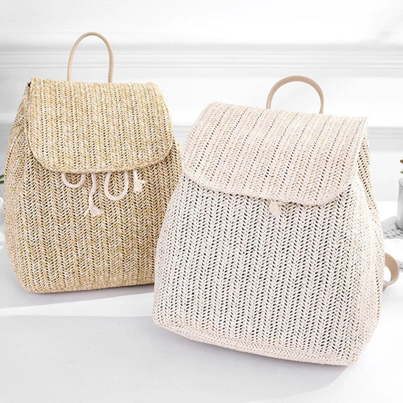 Straw Woven Backpack Ladies Shoulder Bag Light Brown