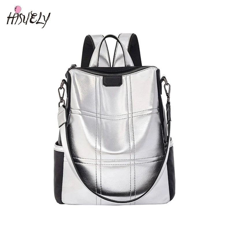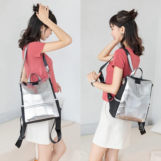 Summer High Silver PU Leather Backpack Waterproof Shoulder Bag