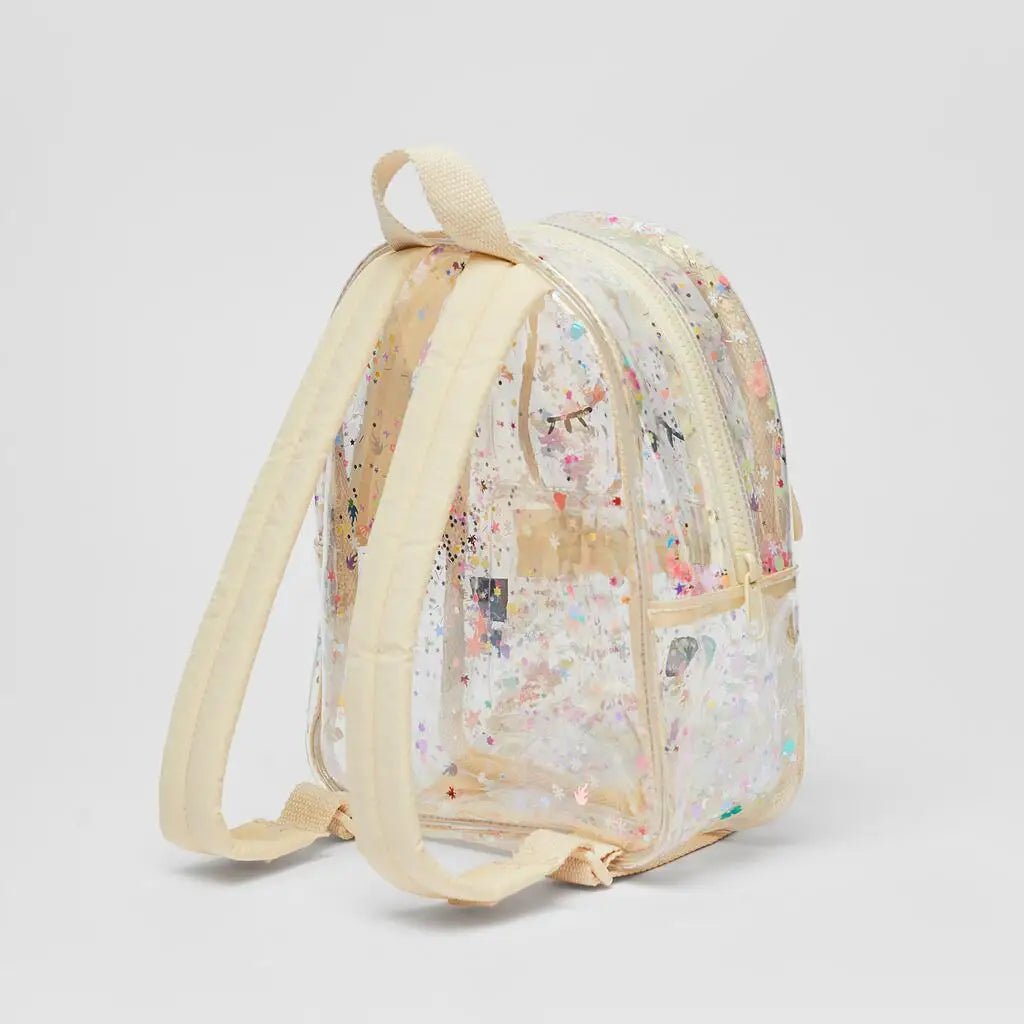 This transparent backpack features summer sequins with a glittering bunny shape design, perfect for shopping and outings. Ideal for children and ladies.