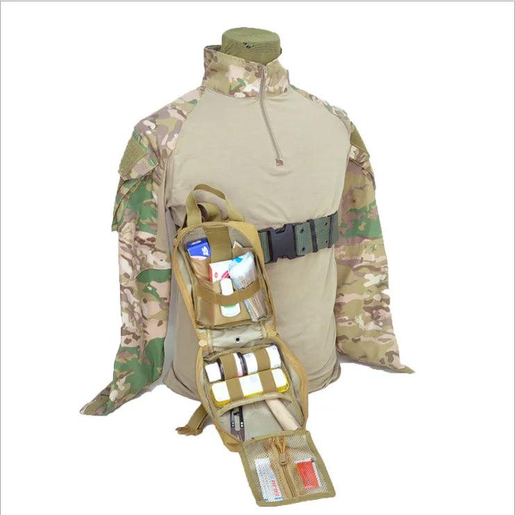 This Military Molle first aid kit waist bag is designed to provide portable and organized storage for medical supplies during tactical operations or outdoor activities.
