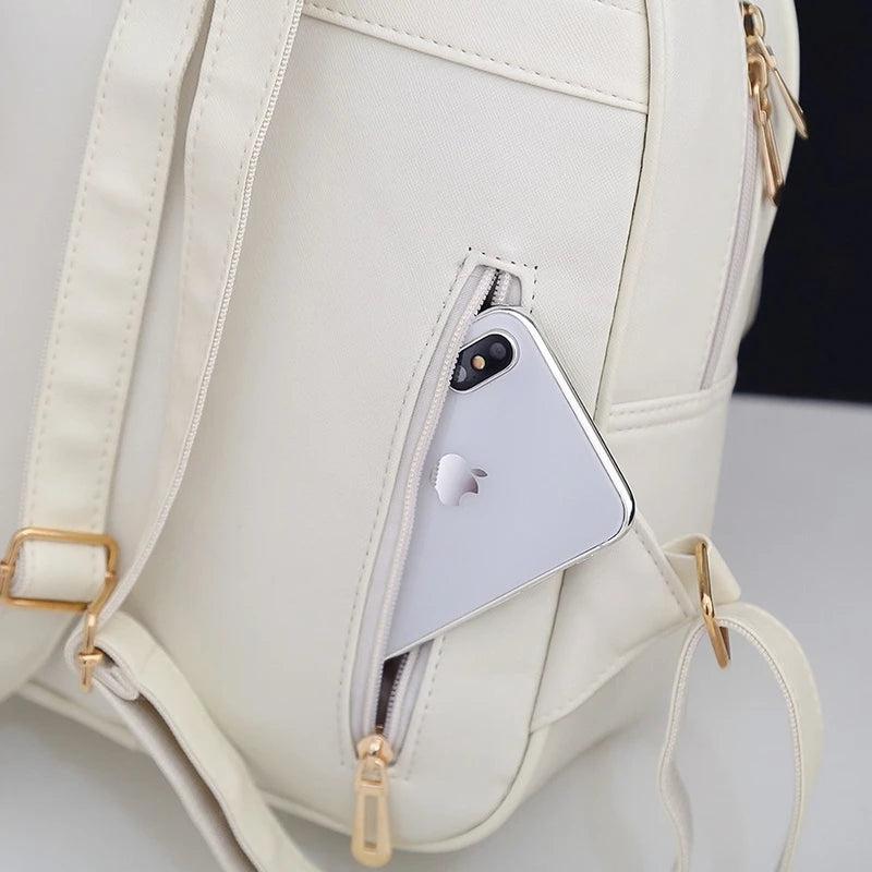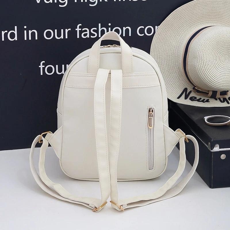 Stylish and functional backpack designed for students and teenagers, made of durable PU leather with tassel and rivet details.