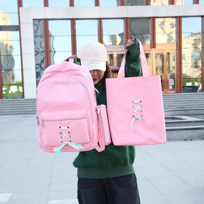 This backpack set is perfect for teenage girls with its stylish lace design and high school-ready features. Includes a backpack, shoulder bag, and high-capacity bag.