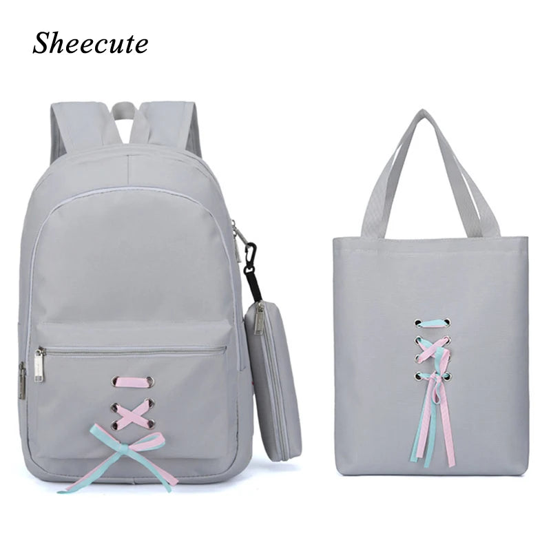 Teen Girls Canvas School Backpack Set Lace Shoulder Bag High Capacity 3 Pcs